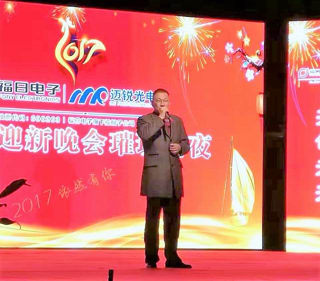 福日电子副总裁、mile米乐光电董事长许政声先生为晚会致辞,他充份肯定了大家的努力,他坚信,在以陈泽波总经理为首的管理班子带领下,mile米乐光电一定能在2017再创辉煌。