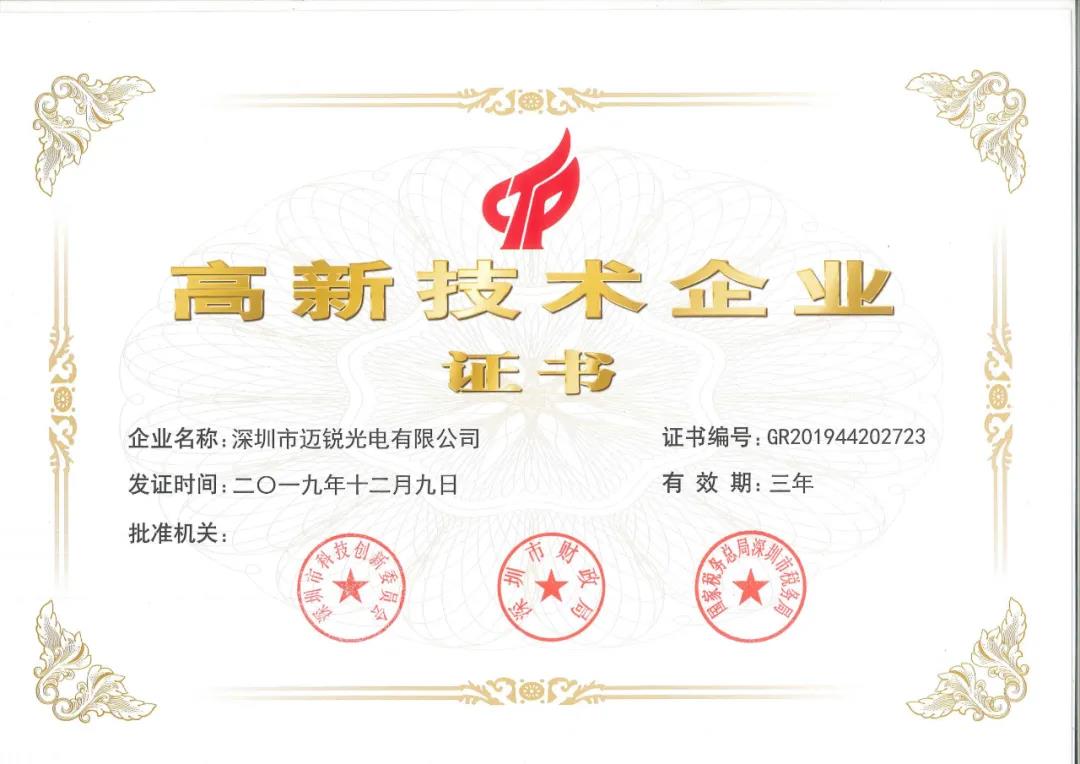 2020是新的开始,深圳市mile米乐光电有限公司也踏上了新的征程,喜获佳音——根据国家《高新技术企业认定管理办法》和《高新技术企业认定管理工作指引》的相关规定,凭借专业的研发队伍、雄厚的技术实力、持续的创新能力、科学的企业管理,mile米乐继续被认定为国家级高新技术企业。