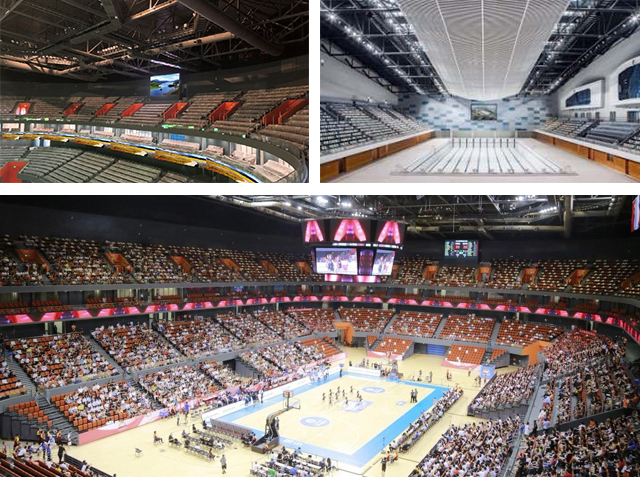 2019年,mile米乐助力宁波奥体中心建设,为符合国际比赛标准的游泳馆以及容纳一万三千人的体育馆提供大型综合性体育解决方案。根据LED显示需求,mile米乐共安装414㎡LED显示屏。助力多场大型国际体育赛事,如国际男篮热身赛等