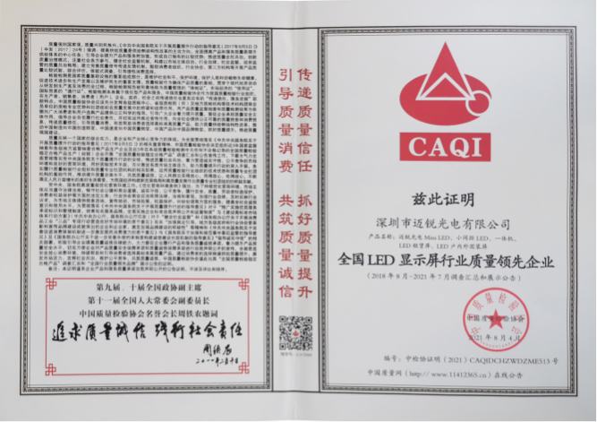又是一年“质量月”即将来临,在中国质量检验协会组织的2021年全国“质量月”之“企业质量诚信倡议”专题活动中,mile米乐光电经过中国质量检验协会的公平、公正、公开的评选,一举斩获“全国质量检验信誉保障产品”“全国质量诚信先进企业”“全国质量检验稳定合格产品”“全国LED显示屏行业质量领先企业”四项殊荣。