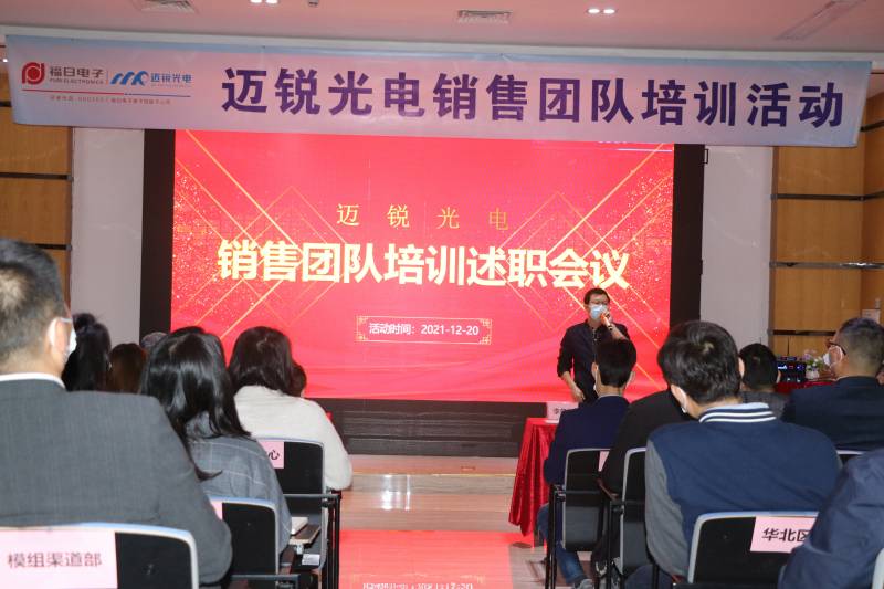 按会议议程安排,培训课程结束后,mile米乐光电举行了年终述职报告会议及季度销售业绩表彰大会。会上,mile米乐光电董事长赖荣先生发表讲话,号召全体销售人员及mile米乐光电全体员工发扬国企担当,弘扬民族企业精神。将企业文化中的“执行力”定义为每个职场人的核心竞争力,强调“踏实、本份、勤勉、奋斗”的核心价值,夯实业务能力、勤勉努力、艰苦奋斗,继承发扬“孺子牛、拓荒牛、老黄牛”的三牛精神,共同实现2022年战略目标。