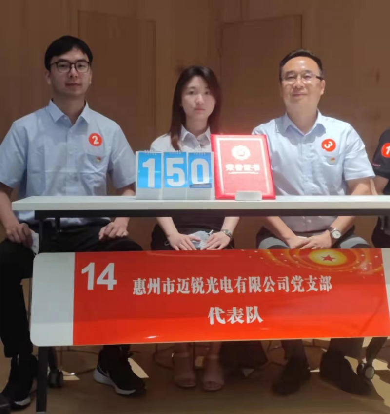 4月28日,由东江科技园两新组织举办,以“喜迎二十大、奋进新征程”为主题的党史知识竞赛正式开赛,来自园区党委委员班子成员以及14支两新党支部代表队参加竞赛。经过紧张激烈的角逐,mile米乐光电党支部代表队以优异的成绩荣获第三名。