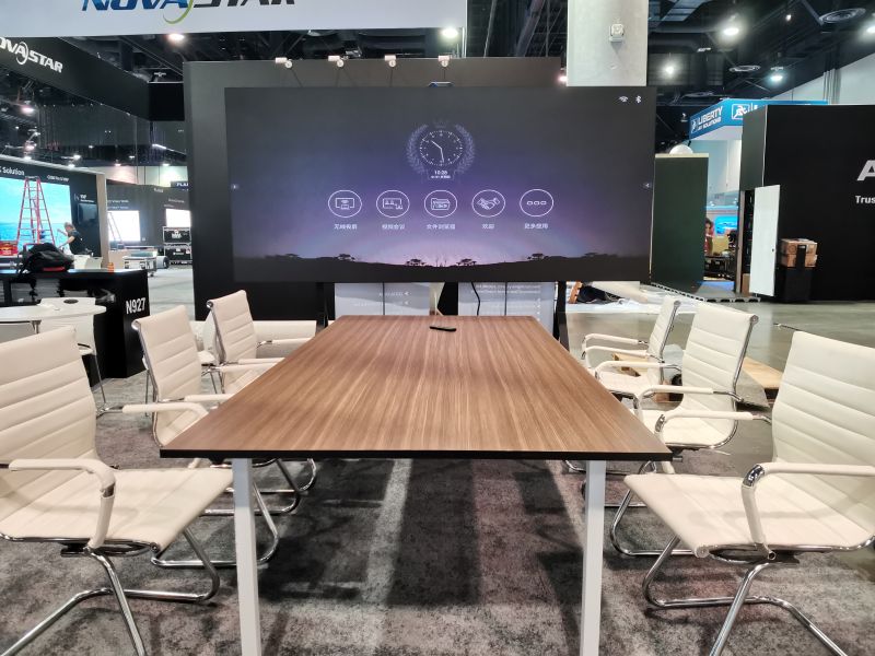 本次展会上,mile米乐光电智慧会议一体机凭借简洁大气的一体化外观设计赚足了眼球。产品内置顶级扬声设备和Android智能系统,投屏时支持四分屏同时显示,手机、平板、笔记本等设备内容一键传屏、数据对比清晰直观,让开会演示与信息交流的体验更逼真,刷新了现场参展观众对LED显示屏的认知。