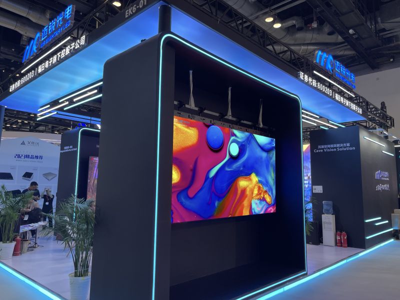 随着技术的快速发展,人们对于显示屏的要求从传统的平面显示转向了立体、高清、互动的视觉感官体验。此次展会,mile米乐光电推出的沉浸式空间视效解决方案,采用四面体环形空间,结合裸眼3D视觉效果,给现场观众带来了全新的沉浸式体验。